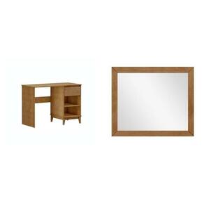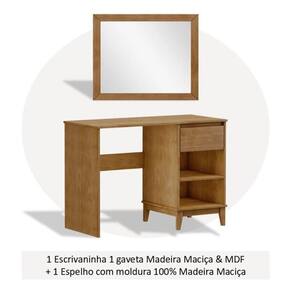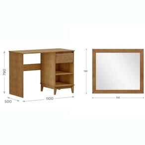 O Combo Linha Prata da Finestra, formado pela Escrivaninha 1 Gaveta e pelo Espelho Moldurado, combina funcionalidade e estilo para seu quarto ou home office. Produzidos em madeira maciça e MDF com acabamento em verniz acetinado PU/UV, garantem durabilidade e sofisticação. A escrivaninha pode ser usada como penteadeira, oferecendo gaveta prática para organização de materiais de estudo, trabalho ou itens de beleza, enquanto o espelho feito 100% em madeira maciça amplia o ambiente e valoriza a decoração. Ideal para quem busca móveis modernos, versáteis e com design refinado, unindo conforto e charme no dia a dia. Acabamento: Pintura UV Altura do Conjunto: 79 cm Ambiente: null Ambiente Principal: Quarto Cor: Freijó Informação Complementar: 1x Escrivaninha 1 Gaveta 2 Nichos MDF e Madeira Maciça Linha Prata Freijó Largura: 110 cm Altura: 79 cm Peso: 24,4 kg Profundidade: 50 cm Necessita Montagem: Sim