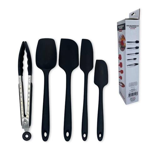 Conjunto Espátulas Pegador Em Silicone Unyhome 5 Peças Preto - Conjunto de Utensílios de Cozinha