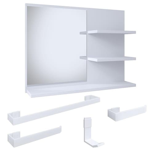 Um banheiro moderno e organizado é indispensável no lar e para garantir esses requisitos as lojas rpm preparou um conjunto perfeito para você, composto pela espelheira astra, um móvel compacto e funcional e o kit de banheiro com 4 peças.