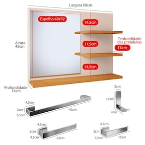 Também conta com um espelho de ótima qualidade, proporcionando uma imagem nítida e clara, facilitando a realização de ações cotidianas, como: escovar os dentes, fazer a barba, se maquiar e muito mais.