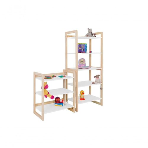 As estantes infantis Colorê são produtos desenvolvidos pela múltipla móveis, modernas e funcionais, perfeitas para organizar e decorar o quarto das crianças. Uma Estante com 5 prateleiras e outra com 3 prateleiras, oferecem espaço para armazenar brinquedos, livros, roupas e outros objetos. Além disso, seu design colorido e lúdico estimula a imaginação e criatividade dos pequenos, tornando o ambiente ainda mais divertido.