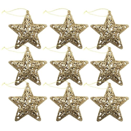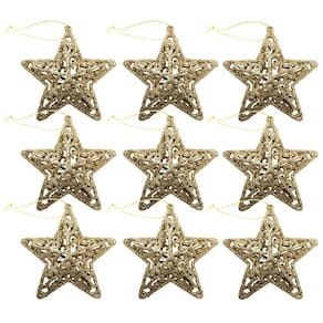 -01 Conjunto Estrela Tridimensional Gliter Arabesco Rosê Gold 8cm Enfeite Árvore 9 Unidades - Magizi
