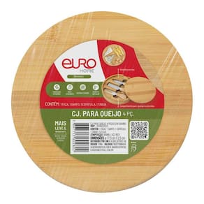 O Conjunto para Queijo da Euro Home é perfeito para quem busca elegância e praticidade ao servir. Composto por 4 peças, inclui uma tábua de bambu com compartimento para armazenar os utensílios e três peças em aço inox com cabo de madeira.