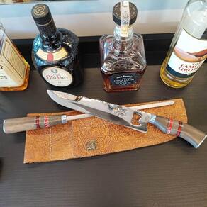 - Kit completo para seu churrasco. Faca, chaira e bainha;