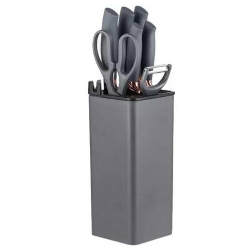 Conjunto Facas Chef Multiuso Eleve sua experiência culinária a um novo patamar com nosso Kit Cozinha de 8 Peças. Desenvolvido para atender tanto chefs amadores quanto profissionais, este conjunto combina funcionalidade excepcional com um design elegante, garantindo resultados impressionantes em cada prato. CONTEÚDO DA EMBALAGEM: 1 Faca de Chef 1 Faca de Pão 1 Faca de Cozinha 1 Faca de Frutas 1 Faca de Tomate 1 Tesoura Multifuncional 1 Descascador 1 Cepo com Afiador de Facas CARACTERÍSTICAS: Versatilidade incomparável: cada faca é projetada para uma função específica, garantindo cortes precisos em uma ampla variedade de alimentos. Durabilidade superior: as lâminas em aço inoxidável resistem à corrosão e mantêm o fio por mais tempo, garantindo um desempenho consistente a cada uso. Conveniência e organização: o cepo desmontável oferece espaço para armazenar e proteger suas facas de forma segura, enquanto o afiador integrado mantém suas lâminas sempre afiadas. Design ergonômico: cabos confortáveis e seguros proporcionam uma experiência de corte sem esforço, mesmo durante longas sessões na cozinha. Fácil limpeza: todas as peças são fáceis de limpar, podendo ser lavadas à mão ou na máquina de lavar. ESPECIFICAÇÕES: Material das lâminas: Aço inoxidável Material dos cabos: Ergonômico Compatibilidade: Adequado para qualquer tamanho e formato de faca Capacidade do cepo: 6 a 8 facas, dependendo do tamanho do vendedor: 1 mês Não perca a oportunidade de transformar sua rotina na cozinha com nosso Kit Cozinha de 8 Peças. Garanta o seu agora e descubra a diferença que utensílios de qualidade podem fazer em cada refeição Marca: Não Informado