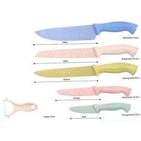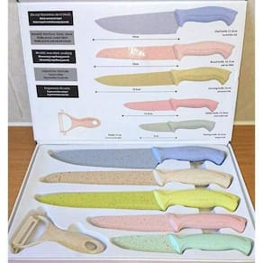 Conjunto de faca de pastel revestido de mármore Torne a culinária divertida e colorida com este conjunto de facas. Este conjunto de facas é perfeito para todos, desde cozinheiros casuais até os chefs mais profissionais. Corte tudo, desde frutas e vegetais até as carnes mais duras com facilidade. Alças com contornos ergonômicos especiais permitem uma pegada confortável, segura e segura. Recursos: Lâminas afiadas de aço inoxidável Superfície lisa, fácil de limpar Revestimento antiaderente de mármore Incrivelmente durável Alça Ergonômica O conjunto inclui: 1 x faca de cozinha de 32,6 cm lâmina 19 cm 1 x faca de pão 32,5 cm lâmina 19 cm 1 x faca de escultura 33 cm lâmina 19,5 cm 1 x faca de serviço 23,9 cm lâmina 12,4 cm 1 x faca de emparelhamento 19,5 cm lâmina de 8 cm 1 x descascador de 13 cm lâmina de cerâmica Marca: Não Informado Ean: 6978391323043