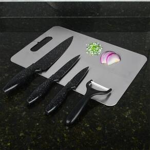 Especificações Técnicas: - Facas com lâminas de aço inox - Faca do Chef 8 com medida total de 32 cm - Faca para desossar 5 com medida total de 23,5 cm - Faca para Legumes 3,5 com medida total de 20 cm - Descascador de legumes com lâmina de cerâmica e medida total de 15 cm