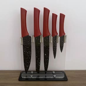 Conjunto De Facas com Suporte Gourmet - Vermelho Inox/Acrílico 6pç - Wincy Conjunto De Facas com Suporte Gourmet - Vermelho Inox/Acrílico 6pç - Wincy