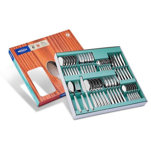 Os talheres e utensílios da linha Lyon têm traços simples, leves e elegantes, podendo compor desde cozinhas mais descontraídas até as sofisticadas. Feitos em aço inox, os produtos são resistentes à oxidação e podem ser levados à lava-louças. Na versão com 42 peças, O faqueiro contém utensílios de uma mesa para seis pessoas: garfos e colheres de mesa, facas de churrasco, colheres e garfos de sobremesa e colheres de chá e de café. Infomações :