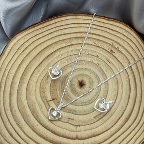 O colar possui uma corrente fina e discreta que mantém o foco no pingente, enquanto os brincos seguem o mesmo estilo, criando uma combinação harmoniosa. Ideal para ocasiões especiais ou para trazer um toque romântico ao visual cotidiano, esse conjunto é uma escolha perfeita para quem aprecia joias delicadas e femininas.