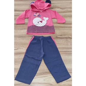 Este conjunto feminino infantil é composto por blusa de manga longa com capuz e calça confortável, ideal para acompanhar o dia a dia das crianças em qualquer ocasião.