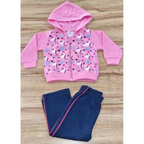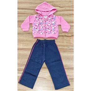 Conjunto Feminino Infantil Inverno Com Capuz P Rosa.