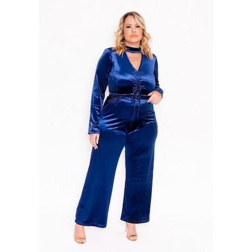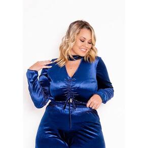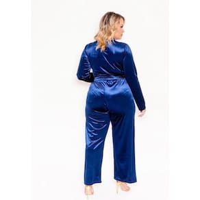 Especificações do Produto: - Conjunto Plus Size - Veludo brilhoso - Mangas Longas Pantalona - Laço amarração Frontal - Decote em v
