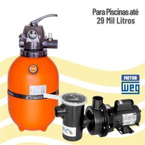 Conjunto filtro e motobomba 1/3cv para piscina até 29 mil litros - nautilus O filtro nautilus para piscina f350p é um filtro de alta eficiência, ideal para a limpeza de piscinas de até 29.000 litros em caso de uso residencial, gerando qualidade e economia, não oferecendo riscos à saúde. Seu tanque é produzido com polietileno rotomoldado, em uma peça única, sem emendas, o que garante alta resistência a tensões residuais. Seu manuseio é simples, fácil e seguro através de válvula seletora multivias em abs com 6 seis posições filtrar, lavar, drenar, recircular, pré-filtrar e fechado . Compatível com a motobomba nautilus série nbf-1 com 1/3 de cv. O filtro nautilus para piscina f350p tem 3 três anos de no tanque e conta com assistência técnica completa e com a qualidade e pioneirismo da marca nautilus. Para piscinas comerciais consulte a ferramenta de dimensionamento ou a norma da abnt 10.339. Características do filtro: Diâmetro: 350mm Peso: 7,7 kg Motobomba recomendada: nbf-1 Modelo do filtro: f350p Vazão: 3,6 m/h Quantidade de sacos de areia: 2 Área filtrante: 0.09m Volume piscina: 15.000 a 22.000 litros Dimensões do filtro: Altura: 77cm Largura: 35cm Especificações técnicas da motobomba: Modelo: nbfc-1 Tipo de motor: capacitor permanente Potência: 1/3cv Tensão: 127/220v - monofásica Conexão: entrada para tubulação de 50mm ou 1. 1/2 Rotação: 3500 rpm Grau de proteção: ip21 : 12 meses de fábrica Itens inclusos: 01 motobomba centrífuga para piscina nbfc-1m 1/3cv 110/220v 60hz - nautilus 01 filtro para limpeza de piscina até 29 mil litros f350p - nautilus 01 manual de instalação : 1 ano de contra defeitos de fabricação. Atenção: O filtro e a motobomba são equipamentos que devem ser posicionados em local próximo da piscina para diminuir as perdas na tubulação de sucção da bomba. Uma perda elevada pode exigir uma motobomba de maior potência. A bomba deve ser instalada preferencialmente abaixo do nível da água da piscina afogada , podendo ser colocada, por ser auto-escorvante, até 1m acima do nível da água. Marca: Não Informado