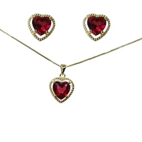Conjunto Folheado a Ouro com Pingente e Brincos de Coração