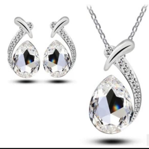 Lindo conjunto de colar e brincos, perfeito para qualquer ocasião, com a elegância da beleza feminina. Detalhes: material liga de zinco de excelente qualidade. Com pedras zircônia colorida e strass de brilho intenso. Tamanho do pingente: 3 cm x 1,5 cm tamanho da corrente: 40 cm + 5 cm tamanho do brinco: 2,5 cm x 1,5 cm