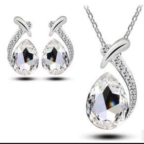 Lindo conjunto de colar e brincos, perfeito para qualquer ocasião, com a elegância da beleza feminina. Detalhes: Material liga de Zinco de excelente qualidade. Com pedras Zircônia colorida e Strass de brilho intenso. Tamanho do pingente: 3 cm X 1,5 cm Tamanho da corrente: 40 cm + 5 cm Tamanho do Brinco: 2,5 cm X 1,5 cm Conteúdo da embalagem: 1 colar de zircônia com strass, 1 corrente, 2 brincos com pedra de zircônia e strass e 1 caixa para manter as peças protegidas. Uma peça de excelente qualidade, delicada, sofisticada e moderna. As bijuterias finas são, com excelente qualidade. Com tempo de uso, existem fatores que aceleram o processo desgaste: suor, contato com produtos químicos produtos de limpeza e cosméticos , cloro de piscina, água do mar, sabonete, entre outros produtos que podem agredir o banho da peça, fazendo com que ela volte à cor do Aço. Peças devem ser limpas apenas com uma flanelinha, de maneira leve. Seguindo estas dicas você terá sua peça por mais tempo. Ideal para ser Utilizado em ocasiões especiais. Uma ótima opção para presentear alguém especial. Marca: Amor Lindo