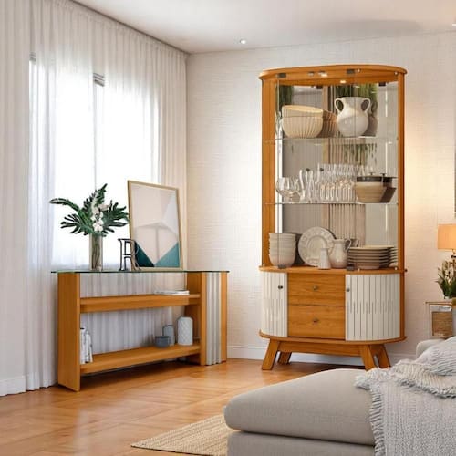 O Conjunto Aparador e Cristaleira irão completar o seu ambiente, ambas possuem design único e inovador que irão deixar qualquer espaço ainda melhor. Proporcionando um ambiente elegante e organizado para sua casa.