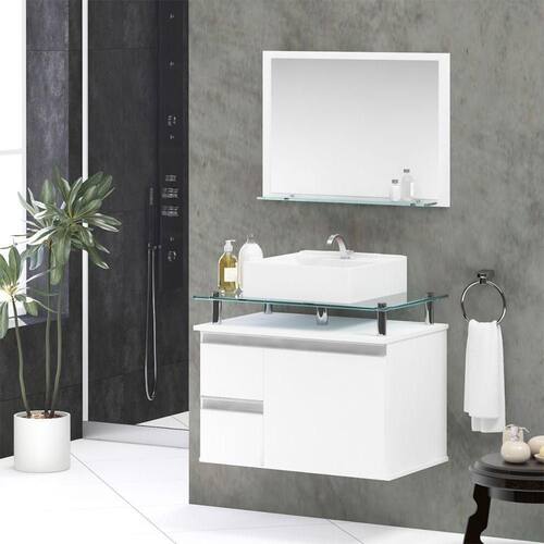 AS IMAGENS SÃO MERAMENTE ILUSTRATIVAS E PODEM SOFRER VARIAÇÕES DE COR E PEQUENOS DETALHES DE ACORDO COM O SEU MONITOR, ILUMINAÇÃO DO AMBIENTE E ATÉ MESMO A SUA PERCEPÇÃO VISUAL.Conjunto Gabinete Banheiro 2 Gavetas 1 Porta 60cm com Espelheira Diamante - Branco