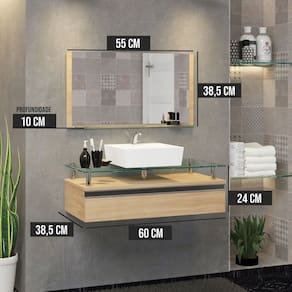 NÃO INCLUI ACESSÓRIOS; COMO SIFÃO, TORNEIRA, VÁLVULA, PARAFUSOS E BUCHAS PARA INSTALAÇÃO E FIXAÇÃO. Acabamento da Cuba: Alto Brilho Acabamento da Porta: Pintura UV Acompanha Cuba: Sim Acompanha Parafusos Para Fixação Na Parede: Não Acompanha Tampo: Sim Ambiente Principal: Banheiro codigo_ean: 7909903708644 Complexidade da Montagem: Baixa: pode ser montado por uma pessoa sozinha Cor: Freijó/Freijó Cor da Cuba: Branco Cor do Produto: Freijó/Freijó Escala de Brilho: Amadeirado Escala de Brilho da Porta: Semi-Brilho Espessura do Espelho: 3 mm Formato do Espelho: Retangular Furação para Cuba e Torneira: Sim Informações Complementares: NÃO enviamos os parafusos e buchas para instalação.Recomendamos parafusos e buchas número 08.A fixação do produto é muito simples Itens Inclusos: 1 espelho, 1 cuba e 1 gabinete Manual de Montagem e Instalação: https://product-hub-prd.madeiramadeira.com.br/910253/documents/534e21cc-54f3-4ad9-be94-d727dcb979991981346Manual20Contarini.pdf Material da Cuba: Mármore Sintético Material da Porta: MDF Material do Puxador da Porta: Alumínio Material do Tampo: Vidro Material Principal: MDF Medida da Cuba (C x L x P): 35X35X11 Medida da Espelheira (A x L x P): 39x55x10 Medida do Gabinete (A x L x P): 24x60x39 Necessita Montagem: Não Origem do Produto: Nacional Peso: 13,5 kg Possui Espelheira: Sim Possui Gabinete: Sim Possui Gavetas: Não Possui iluminação: Não Possui Pés: Não Possui Portas: Sim Possui Rodízio: Não Produto Montado: Não Quantidade de Portas: 01 Recomendações de Uso, Manutenção e Limpeza: A limpeza deve ser feita com pano úmido e liso.Não utilizar materiais ásperos ou jatos de água diretamente sob o produto. Suporte para Toalheiro: Não Tamanho do Espelho (A x L): 39X75 Tipo de Dobradiça/Corrediça da Porta: Alumínio Tipo de Fixação do Espelho: Parafusos Tipo de Madeira Maciça da Porta: Eucalipto Tipo de Porta: Basculante Tipo de Puxador da Porta: Embutido Marca: Contarini