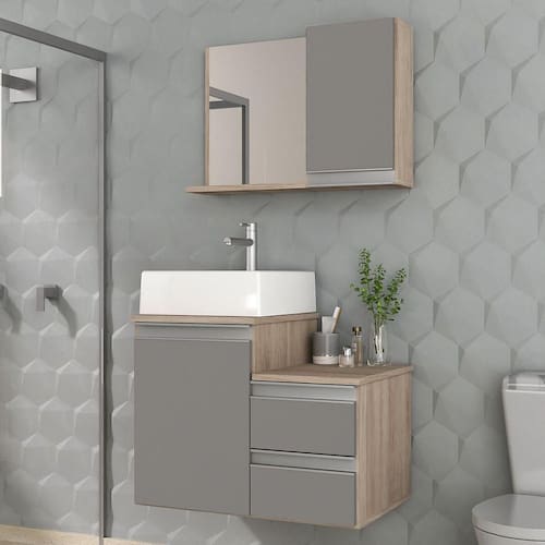 Acompanha : Gabinete + Cuba Elevada + Espelheira com espelhoModelo moderno, com puxador de alumínio tipo perfil. (igual móveis sob medida)