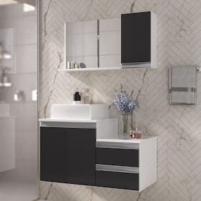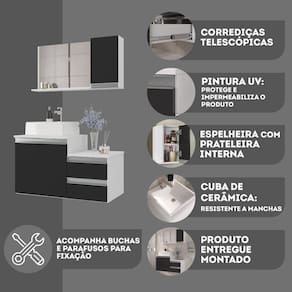 Acompanha : Gabinete + Cuba Elevada + Espelheira com espelhoModelo moderno, com puxador de alumínio tipo perfil. (igual móveis sob medida)