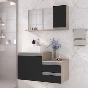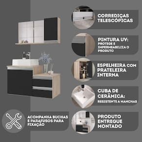 Acompanha : Gabinete + Cuba Elevada + Espelheira com espelhoModelo moderno, com puxador de alumínio tipo perfil. (igual móveis sob medida)