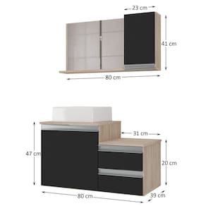Medidas gabinete: 80cm x 40cm x 47 (comp. / prof. / altura)Medidas da pia sobrepor : 34x34x11Medidas Espelheira : 80cm x 40cm x 14cm (comp. / altura / prof)