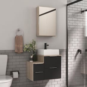 Acompanha : Gabinete + Cuba Elevada + Espelheira com espelhoModelo moderno, com puxador de alumínio de encaixe