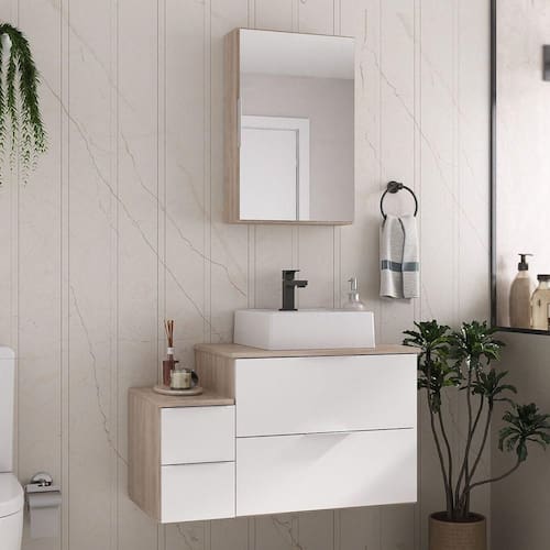 Acompanha : Gabinete + Cuba Elevada + Espelheira com espelhoModelo moderno, com puxador de alumínio de encaixe