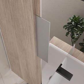 -Espelheira pode ter abertura da porta de ambos os lados. E só escolher a posição (porta abrindo para direita ou esquerda) na hora de fixar na parede.Os puxadores são únicas peças que vão soltas para fixação, pode-se escolher usá-los em diferentes posições da porta. Na foto anuncio estão centralizados. Mas pode deixar mais para direta ou esquerda. Dependendo da posição do gabinete na parede, pode escolher a melhor posição para atender na praticidade e design do mesmo.