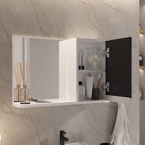 -Espelheira tem 1 porta e espelho(tem prateleira dividindo altura dentro da porta)