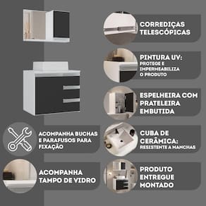 Acompanha : Gabinete + Cuba Elevada + Espelheira com espelho + Tampo Vidro Temperado