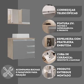 Acompanha : Gabinete + Cuba Elevada + Espelheira com espelho