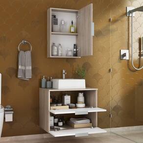 Modelo moderno, com puxador de alumínio.Medidas gabinete: 60cm x 40cm x 47 (comp. / prof. / altura)Medidas da pia sobrepor : 34x34x11Medidas Espelheira : 60cm x 40cm x 14cm (comp. / altura / prof)