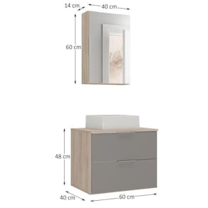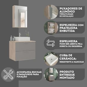 Modelo moderno, com puxador de alumínio.Medidas gabinete: 60cm x 40cm x 47 (comp. / prof. / altura)Medidas da pia sobrepor : 34x34x11Medidas Espelheira : 60cm x 40cm x 14cm (comp. / altura / prof)