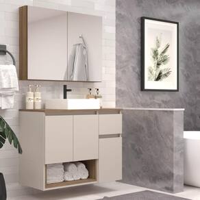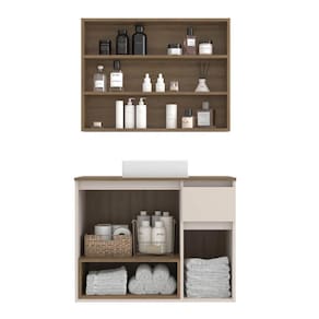 O conjunto para banheiro CJ9240 é produzido em MDP 15mm e acabamento em FF fosco. A estrutura do fundo é em MDF 3mm. O gabinete possui 3 portas de bater com dobradiça metálica, 1 gaveta com corrediça metálica e que suporta 5kg, e 1 nicho. A espelheira possui 2 portas de bater com dobradiça metálica, 2 espelhos 3mm que já vão colados nas portas e 2 prateleiras internas que suportam 5kg cada. Necessita fixação na parede e acompanha parafusos para esta fixação. Produto suporta até 55kg. Conteúdo da embalagem: móvel, ferragens e manual de montagem. A fixação das peças e/ou acessórios é feita por parafusos, cavilhas e minifix. Para a limpeza do móvel utilizar pano levemente umedecido. Garantia de 03 meses contra defeitos de fabricação. Medidas do produto GABINETE (AxLxP): 62x80x40cm. Peso do gabinete: 24kg. Medidas do produto ESPELHEIRA (AxLxP): 61,5x80x12cm. Peso da espelheira: 17,5kg. Produto acompanha cuba branca de sobrepor. Marca: Não Informado