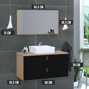 Conjunto Gabinete de Banheiro Berlim 60 Cm Freijo Preto