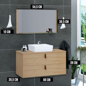 Itens Inclusos: Gabinete, pia e espelheira (com espelho)