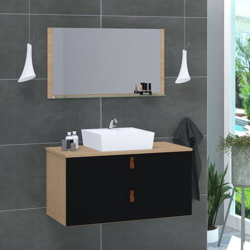 Conjunto Gabinete de Banheiro Berlim 80 Cm Freijo Preto
