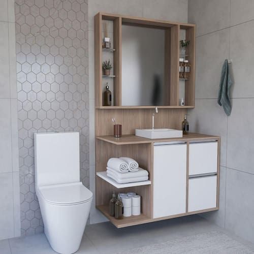 Conjunto Gabinete E Espelheira Plena Premium 100cm Freijo Branco Conjunto Gabinete e Espelheira Plena Premium 100cm Freijo Branco - Experimente o auge da sofisticação com o Plena Premium 100. Este conjunto de sobrepor foi criado para quem busca o melhor em qualidade e design. O balcão espaçoso (70cm alt x 100cm larg x 45cm prof) e a espelheira imponente (110cm alt x 100cm larg x 15cm prof) oferecem uma experiência completa e luxuosa para o seu banheiro. Materiais de alta qualidade e acabamento impecável para um ambiente premium.