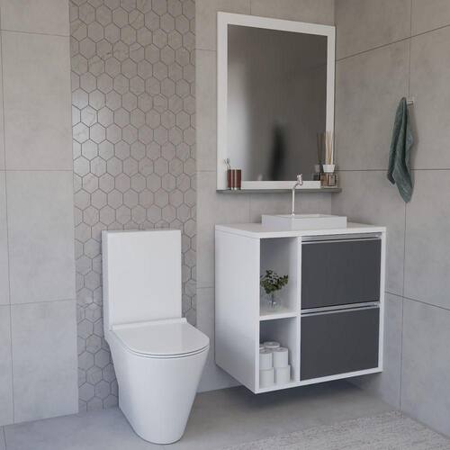 Conjunto Gabinete E Espelhiera Plena Compact 80cm Chumbo Conjunto Gabinete e Espelhiera Plena Compact 80cm Chumbo - Sofisticação também cabe em espaços menores! O Plena Compact 80 traz toda a qualidade premium da linha Plena em um formato mais compacto. O conjunto de sobrepor inclui um balcão elegante (70cm alt x 80cm larg x 45cm prof) e uma espelheira charmosa (90cm alt x 80cm larg, profundidade N/A). Ideal para quem não abre mão do luxo e da qualidade, mesmo com menos espaço.