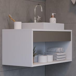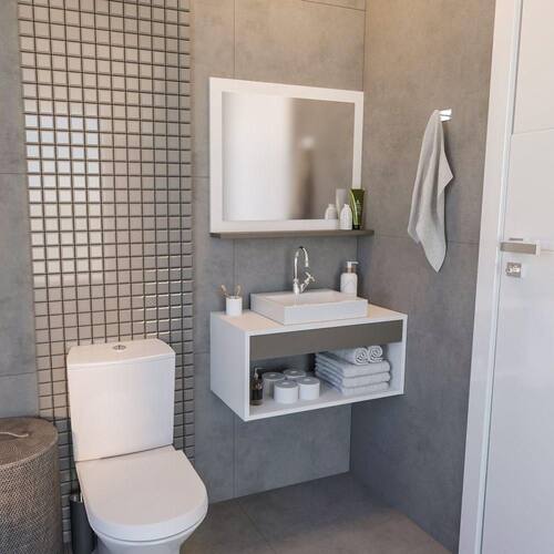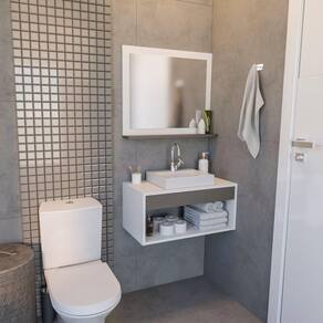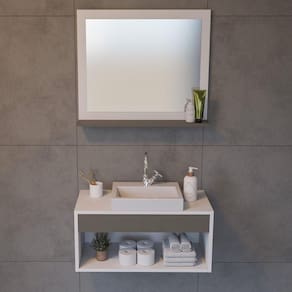 Conjunto Gabinete E Espelho Suspenso Meu Canto 60 - Modelo 4 Chumbo Conjunto Gabinete e Espelho Suspenso Meu Canto 60 - Modelo 4 Chumbo - Adicione um toque de charme e aconchego ao seu banheiro com o Meu Canto Modelo 4. Este conjunto suspenso combina um balcão funcional (40cm alt x 60cm larg x 32cm prof) com uma espelheira cheia de estilo (50cm alt x 60cm larg x 8cm prof). Perfeito para criar um ambiente acolhedor e com a sua personalidade, sem abrir mão da praticidade.