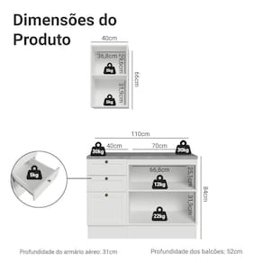 - 31cm de profundidade no aéreo e 52cm no balcão