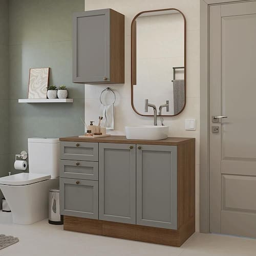 Cor: Cinza | Garantia: 3 meses contra de fabricação | Dimensões - Altura: 225 cm | Dimensões - Largura: 110 cm | Dimensões - Profundidade: 52 cm | Produto (produto): Kit Banheiro | Marca: Madesa | Peso aproximado: 62 kg | Material: MDP | Estado de Origem: RS | Conteúdo da embalagem: Kit Banheiro | Material para Filtro: MDP | Instruções/Cuidados: Utilize um pano limpo, levemente umedecido e seque em seguida a superfície. Não usar produtos químicos ou abrasivos para a limpeza. Recomendamos polir seu móvel com lustra-móveis duas a três vezes por ano. | Produto precisa de Montagem?: Sim | Peso Produto Com Embalagem (Kg): 61,73 | Altura do Produto com Embalagem (cm): 50,8 | Largura Produto Com Embalagem (cm): 53,4 | Comprimento Produto Com Embalagem (cm): 86,6 | Descrição do Tamanho: 225 cm x 110 cm x 52 cm | Nome do Simples no Fornecedor: Conjunto Gabinete para Banheiro 110cm 3 Gavetas 3 Portas Rustic/Cinza Vik Madesa 01 | Fabricante: Madesa | RBN: Casa/Móveis/Móveis para Banheiro/Conjuntos de Móveis para Banheiro | Materiais do corpo: MDP | Quantidade de caixas de embalagem: 7 | Bullet Point 1: Dimensões: 225 cm altura x 110 cm largura x 52 cm profundidade | Bullet Point 2: Os puxadores ponto em ouro envelhecido, feitos em metal resistente, que adicionam personalidade e um charme único. | Bullet Point 3: O detalhe chanfrado das frentes forma molduras elegantes, inspiradas no estilo americano com um toque moderno. | Bullet Point 4: Possui acabamento de alta resistência, conservando a beleza do móvel por muito mais tempo. | É Frágil: Não | Quantidade de itens (number_of_items): 1 | Certificação de teste externa (external_testing_certification): Sim | Precisa de baterias ou pilhas: Não | da peça (part_number): MDBA030001F9 | Peso do item (item_weight): ;unit=kilograms | Dimensões do item P x L x A (item_depth_width_height): depth#value=52;depth#unit=centimeters;height#value=225;height#unit=centimeters;width#value=110;width#unit=centimeters | Exige montagem (is_assembly_required): Sim | Requer montagem (REQUIRES_ASSEMBLY): Sim | Inclui manual de montagem (INCLUDES_ASSEMBLY_MANUAL): Sim | do modelo (model_number): MDBA030001F9 | is_assembly_required: Sim | Inclui pia: Não | Inclui espelhos: Não | Componentes incluídos (included_components): Portas | Cor: Rustic/Cinza