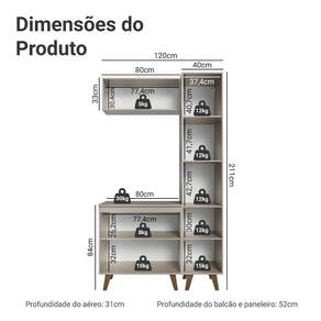 - 31cm de profundidade no aéreo e 52cm no balcão e no armário