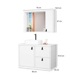 Puxadores pontuais em couro dão o toque final de sofisticação a esse lindo conjunto. Acabamento da Cuba: Polido Acabamento da Gaveta: Pintura UV Acabamento da Porta: Pintura UV Acompanha Cuba: Sim Acompanha Manual de Instalação: Sim Acompanha Parafusos Para Fixação Na Parede: Sim Acompanha Tampo: Não Altura do Espelho: 45 cm Ambiente Principal: Banheiro codigo_ean: 7909903663097 Cor: Branco Cor da Cuba: Branco Cor do Produto: Branco Cor Interna: Branco Escala de Brilho: Brilhante Escala de Brilho da Gaveta: Brilhante Escala de Brilho da Porta: Brilhante Espessura do Espelho: 3 mm Formato do Espelho: Retangular Furação para Cuba e Torneira: Sim Gaveta com Chave: Não Itens Inclusos: Gabinete, Cuba, Espelheira com Armário, Puxadores, Itens para fixação Largura do Espelho: 54 cm Linha ou Coleção: CONJUNTO TORO 80 CM Manual de Montagem e Instalação: https://product-hub-prd.madeiramadeira.com.br/905930/documents/6fadb4a4-a74a-4117-811b-56d62f763d9473manualinstalacaocasanova.pdf Material da Cuba: Mármore Sintético Material da Gaveta: MDF Material da Porta: MDF Material do Puxador da Gaveta: Couro Material do Puxador da Porta: Couro Material Principal: MDF Medida da Cuba (C x L x P): 38 x 30 x 11 cm Medida da Espelheira (A x L x P): 47 x 76 x 12,5 cm Medida do Gabinete (A x L x P): 51,5 x 80 x 35 cm Necessita Montagem: Não Origem do Produto: Nacional Peso: 29,2 kg Peso Máximo por Gaveta: 2 kg Possui Espelheira: Sim Possui Gabinete: Sim Possui iluminação: Não Possui Nichos: Não Possui Pés: Não Possui Porta de Vidro: Não Possui Recorte No Tampo Para Cuba: Não Possui Recorte No Tampo Para Misturador: Não Possui Rodízio: Não Possui Sifão: Não Possui Tampo: Não Produto Montado: Não Recomendações de Uso, Manutenção e Limpeza: Limpeza com pano úmido Suporta Até (kg): 10 kg Suporte para Toalheiro: Não Tamanho do Espelho (A x L): 45 x 54 cm Tipo de Corrediça da Gaveta: Metálica Telescópica Tipo de Dobradiça/Corrediça da Porta: Metálica Tipo de Fixação do Espelho: Parafusos Tipo de Porta: Abrir Tipo de Puxador da Gaveta: Externo Tipo de Puxador da Porta: Externo Válvula indicada: Válvula padrão