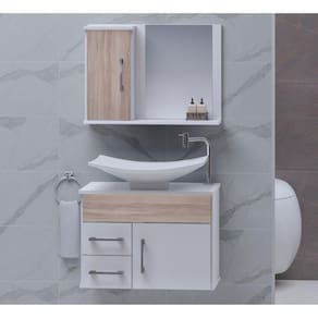 A madeira é preparado com várias camadas de fundo preparador (prime) seguido de várias camadas de tinta com secagem imediata em câmaras de luzes, garantindo uma grossa camada de material sobre a madeira, tornando-a resistente. Produto: Confeccionado em MDF e MDP, recorte é realizados com maquinários de última geração, garantindo um corte milimétrico e preciso para uma estrutura e acabamento de qualidade. Decoração sofisticada: Em meio aos diversos benefícios de se ter um gabinete em seu banheiro, a principal é ter um ambiente completo, marromhor decorado e mais sofisticado, elevando o nível da decoração do seu banheiro. Ferragens anticorrosão: As ferragens possuem material resistente, que não enferrujam mesmo em contato com água.