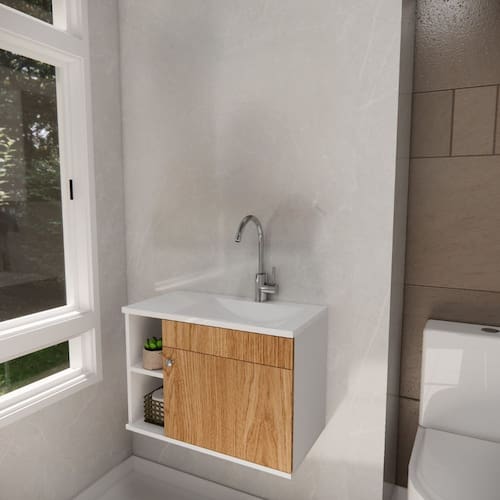 Praticidade e elegância para o seu banheiro! Este gabinete de 60cm é a escolha ideal para ambientes compactos que não abrem mão de estilo e funcionalidade. Acompanha cuba de embutir em mármore sintético, resistente à umidade e fácil de limpar, proporcionando um acabamento sofisticado e durável.