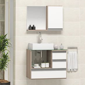 Acompanha : Gabinete + Cuba Elevada + Espelheira com espelho + Tampo Vidro incolor